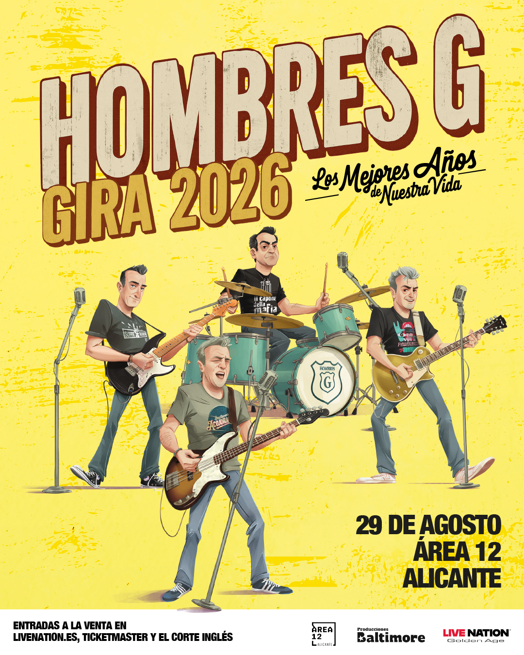 Hombres G llega a Alicante el 29 de agosto. Una de las bandas más queridas y emblemáticas de la música española, llegan con su gira Los Mejores Años